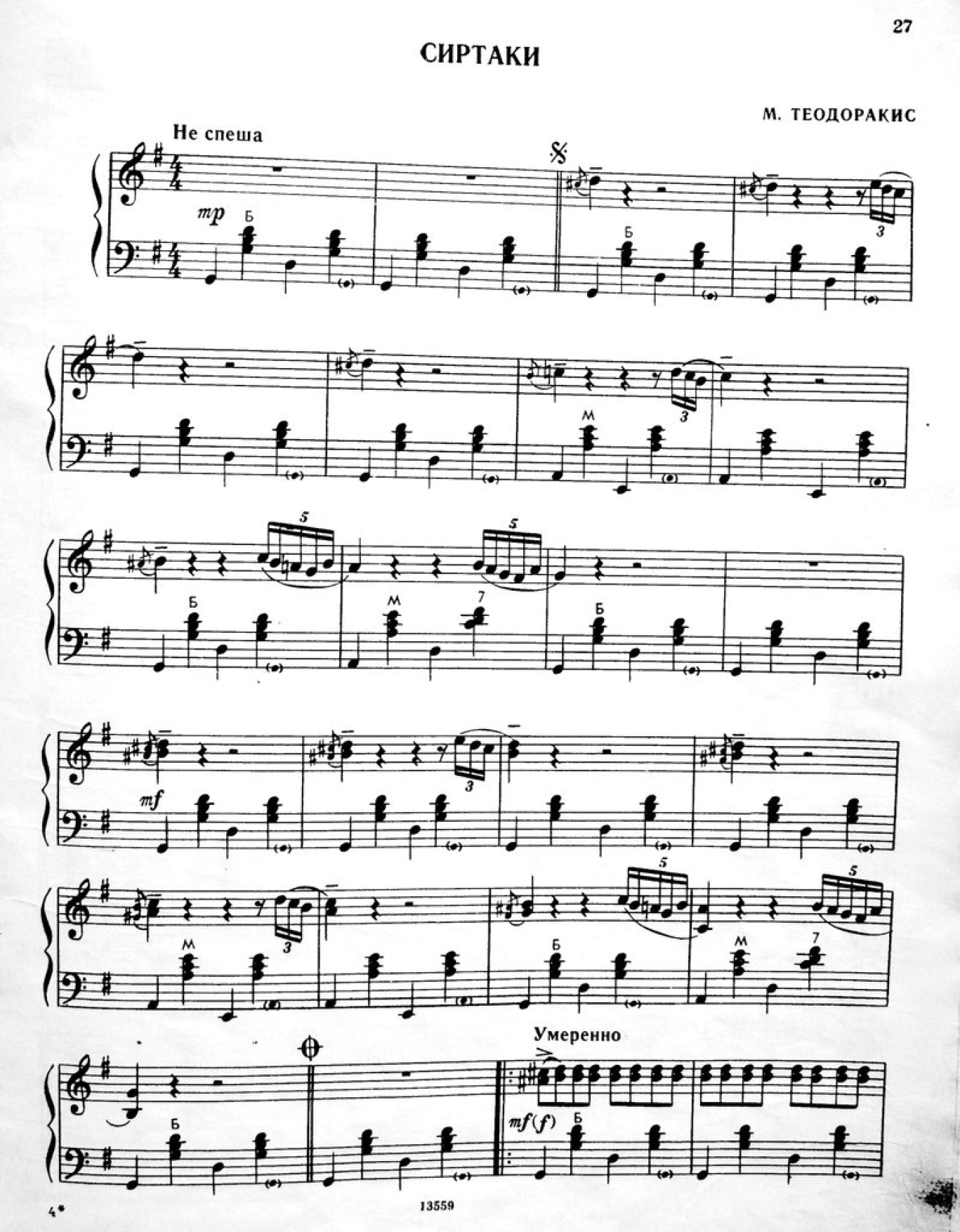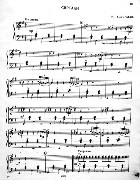 М. Теодоракис - Сиртаки 1. Ноты. Лист 1.